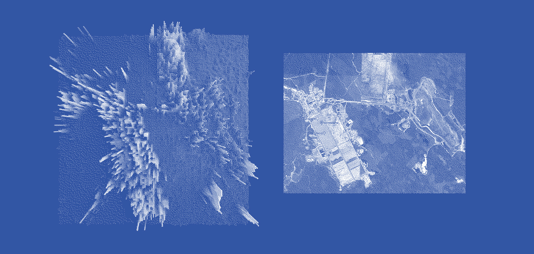 The second part of the project consist of three 3D-animations based on different satellite images of Finnish mines. By using colour and the mine’s depth, the void made by the extraction is visible by inverting the depth of the extraction and giving it mass. The void in the real without matter is now a non-void in digital space.